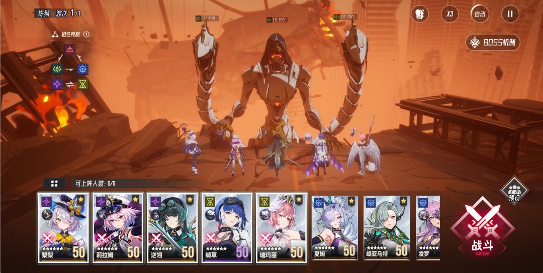 战胜条件:莉拉姆能在第三个大招前解决boss