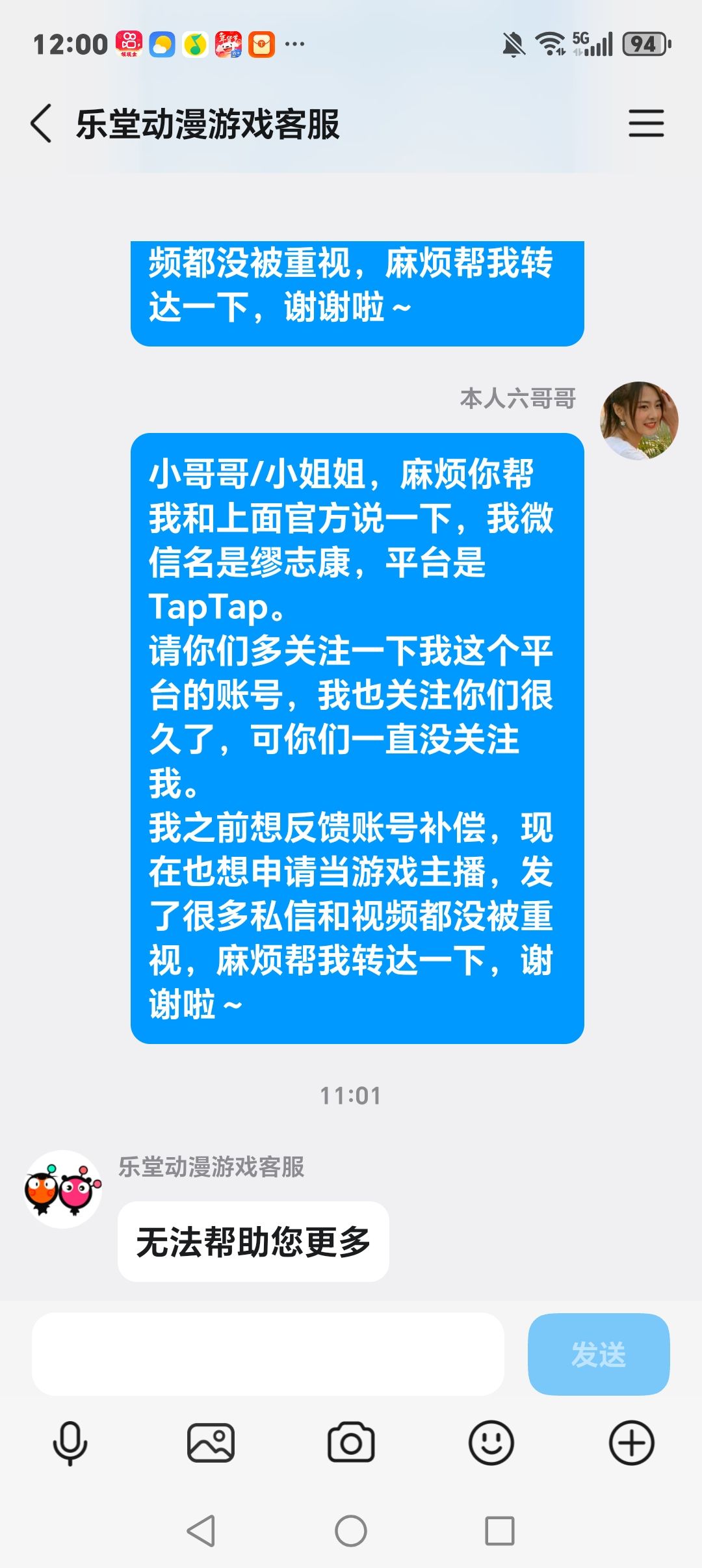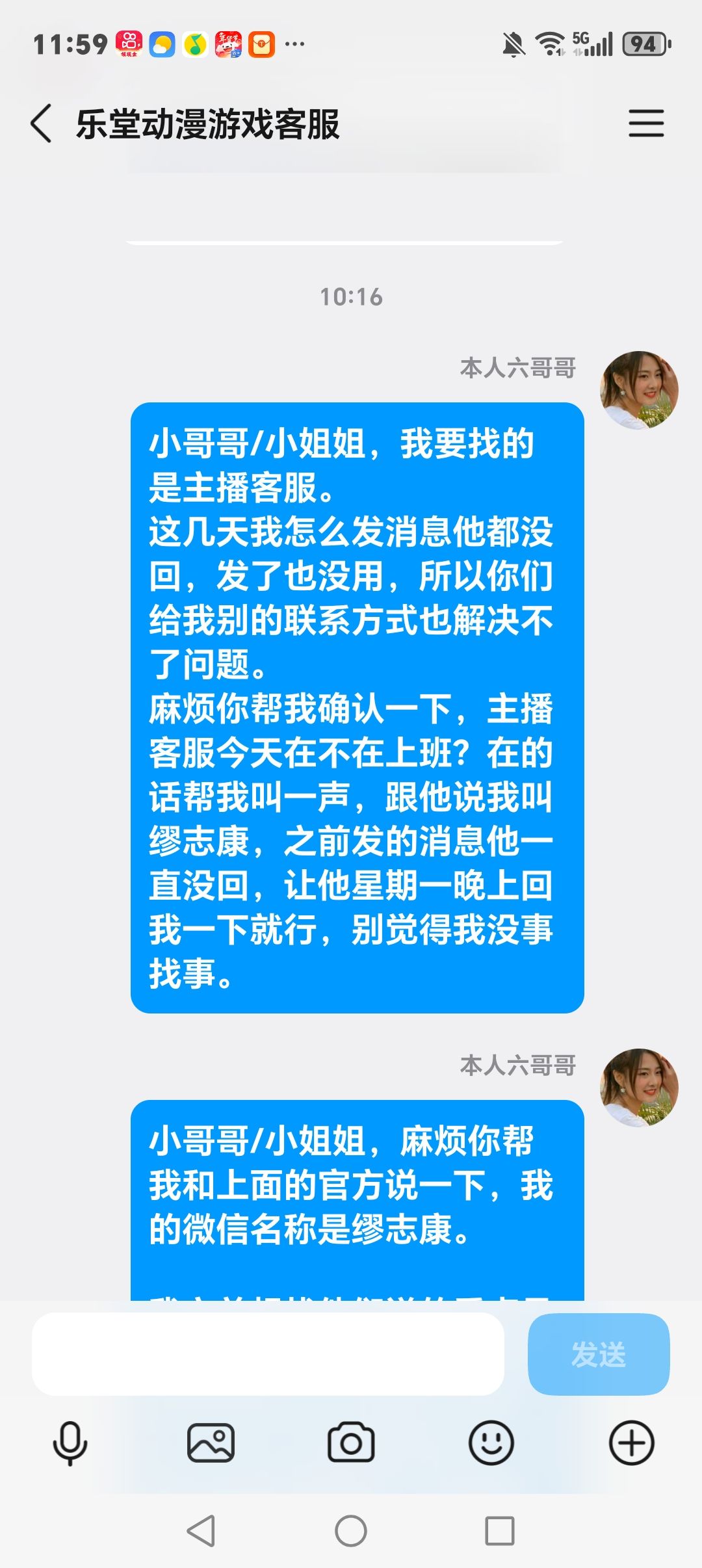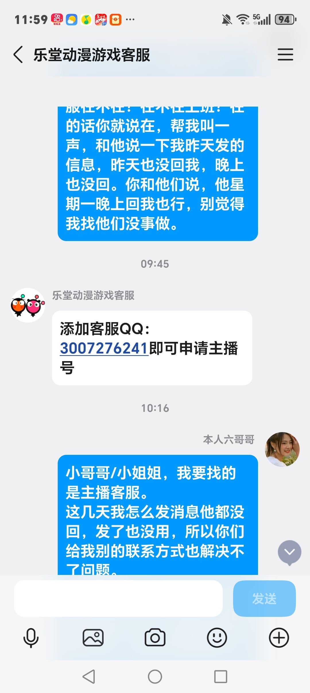 我在抖音、快手都发过申请主播号的信息,你们一直没重视、没回我;微信那边你们也不让我发消息。