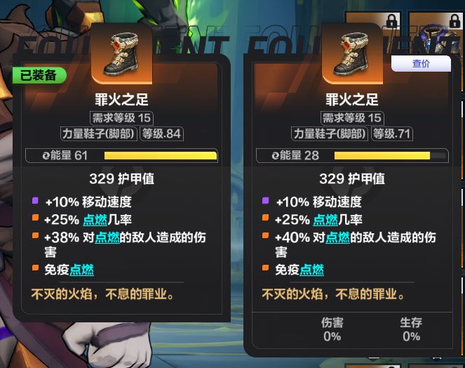 左边装备是我刷的,右边装备是我买的。