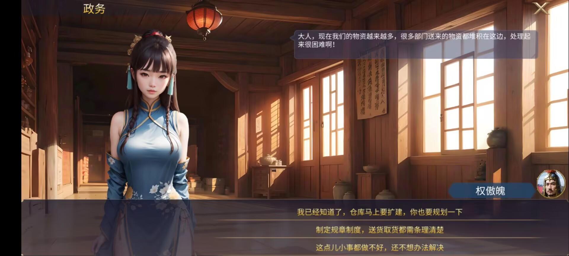 选择:我已经知道了,仓库马上要扩建,你也要规划一下。可获得:中级经验书5、繁荣值+3