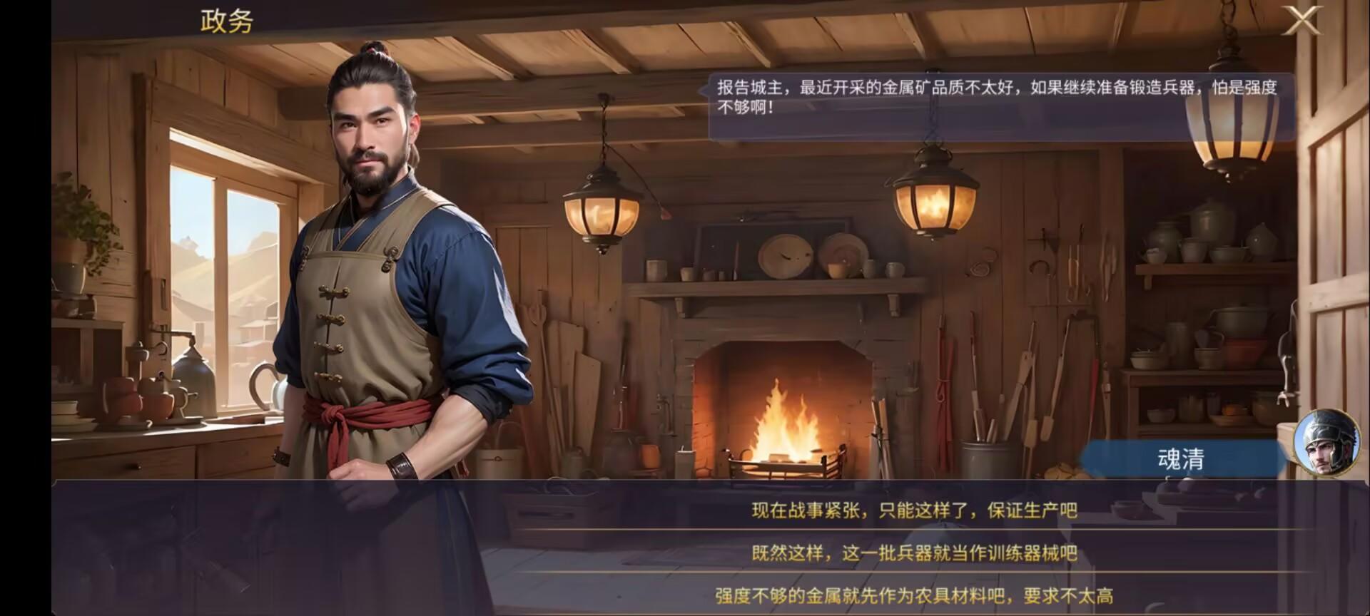 选择:强度不够的金属就先作为农具材料吧,要求不太高。可获得:粮食5000、繁荣值+2