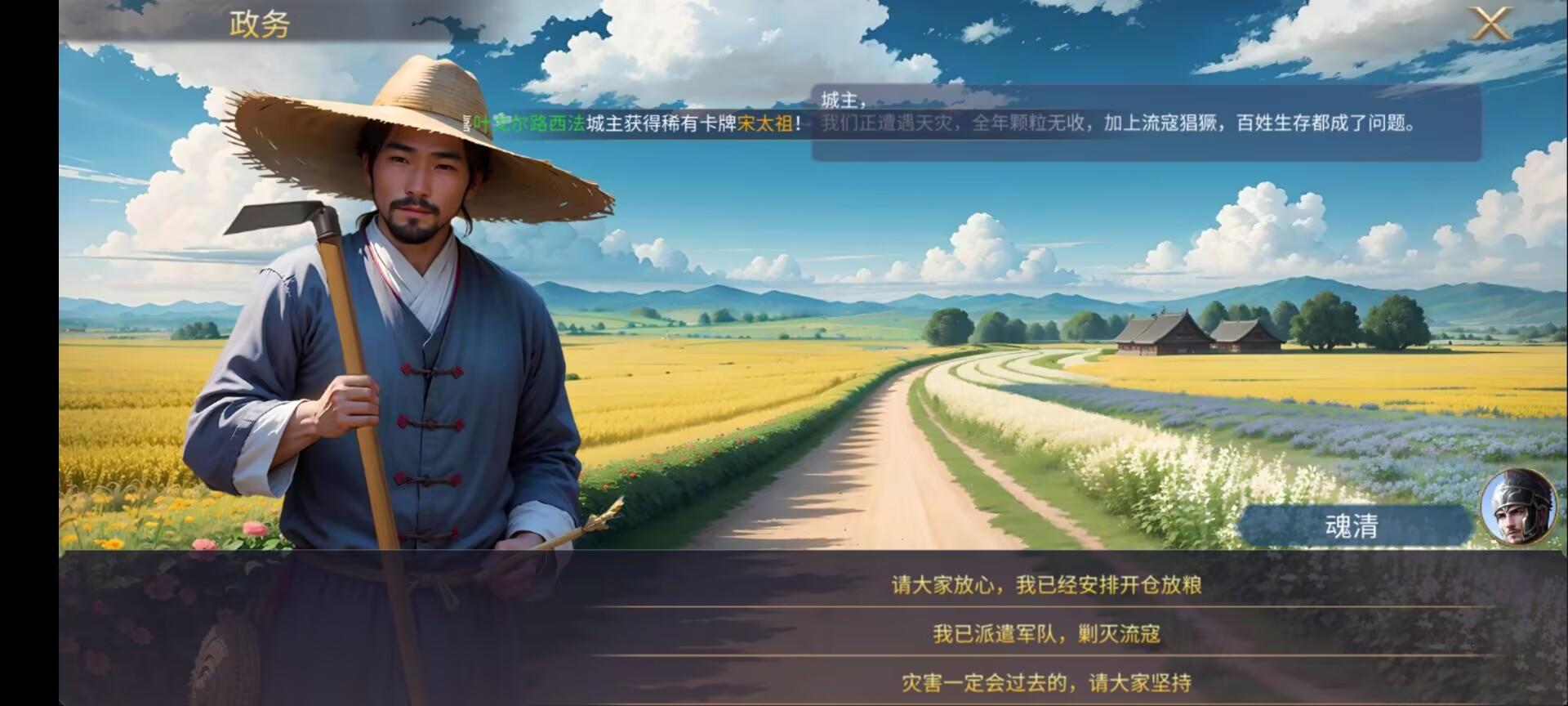 选择:让大家放心、我已经安排开仓放粮,可获得:银币1万、安定+1、繁荣+3