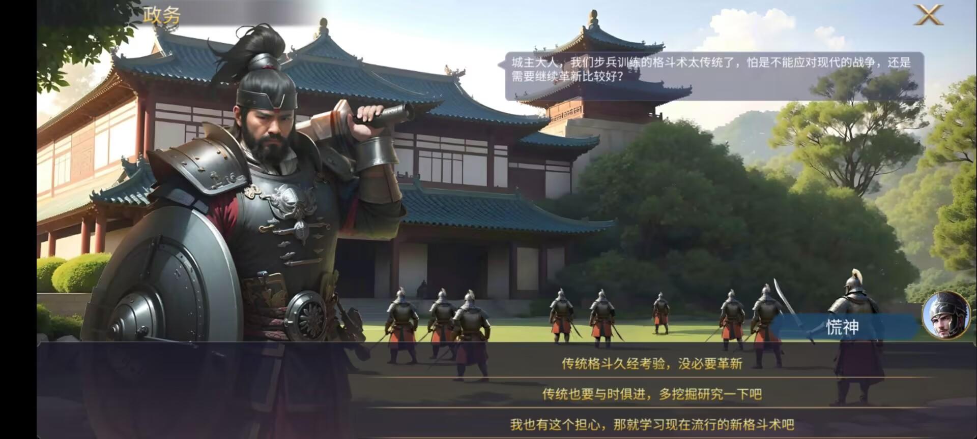 选择:传统格斗术久经考验 没必要革新,可获得中级经验书1、步兵300、安定减1
