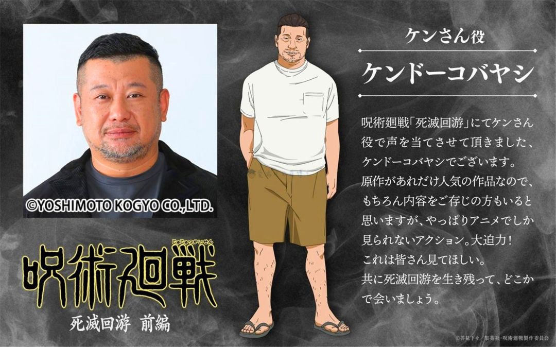 《咒术回战》第三季《死灭回游 前篇》正在热播中,在之前的几集中,禅院直哉的装酷操作,禅院真希的热血打斗让他们引发热议,成为了焦点角色!就连龙套“健哥”也风光了一把,因为“健哥”这个角色本身正是以日本知名搞笑艺人小林剑道为原型设计的,而官方真的邀请了小林剑道担任“健哥”的配音,算是自己给“自己”配,可谓神选角!
