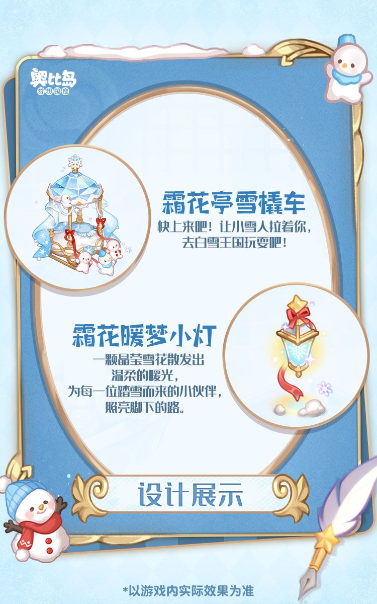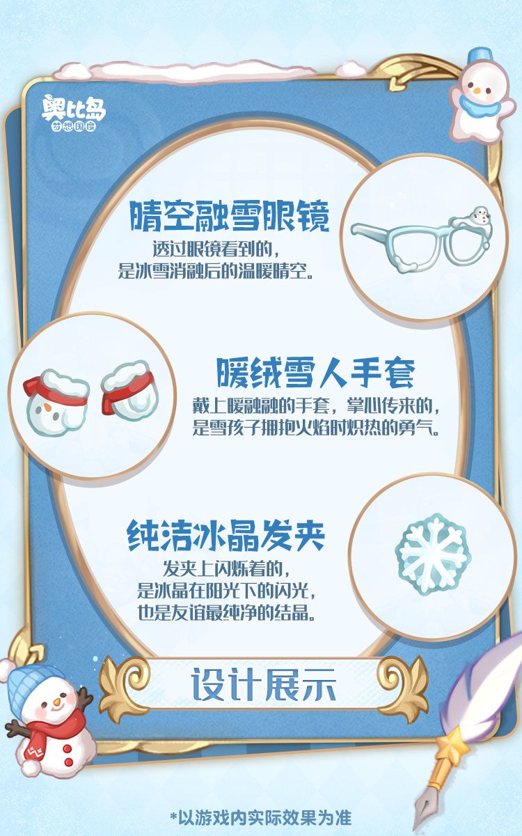 ⭐奥比生活新系列「白雪邀约套装」「白雪娃娃套装」等系列散件、「童话雪境」背景卡,将在2月10日上线。本期还有奥比生活塔罗系列装扮返场,本期生活达到一定等级即可获得「永恒之春套装」「暖阳使者套装」🛒资格,喜欢的奥比请看过来👇