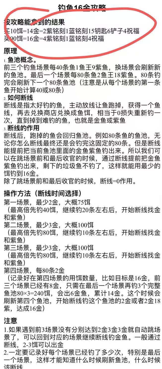 5:利用以上规则,假设你剩下20个鱼饵,且已经掉满最后一个池子80条鱼,那么你可以通过断线放弃蓝色鱼,争取20鱼饵把新池子两条金鱼,18条紫鱼都钓出来。博主验证可行。