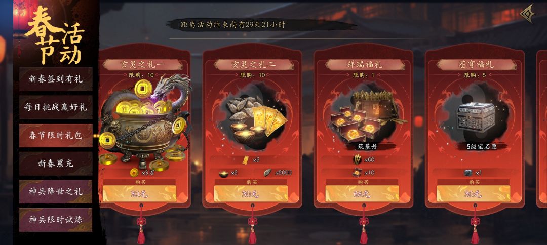 这尼玛啥活动 春节活动不想给福利就别给 7天就给一个去年的灵器 一天天不研究新地图 净研究用6代圈钱是吧 真的很让老玩家没有玩下去的动力 每天上线把任务做完没意思了 特么我们不是韭菜 你特么想割就割……