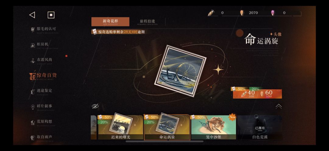 如果惊奇选购单没有用的可以直接用来买个头像 只要60雨滴还是很划算的