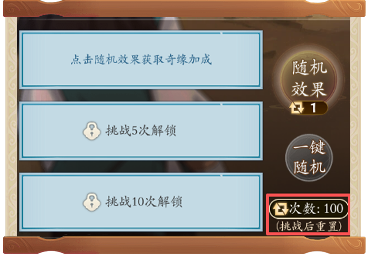 *刷新次数用完后,无法继续通过铜币或其他途径继续刷新,进行一次挑战后自动重置为100次刷新次数。