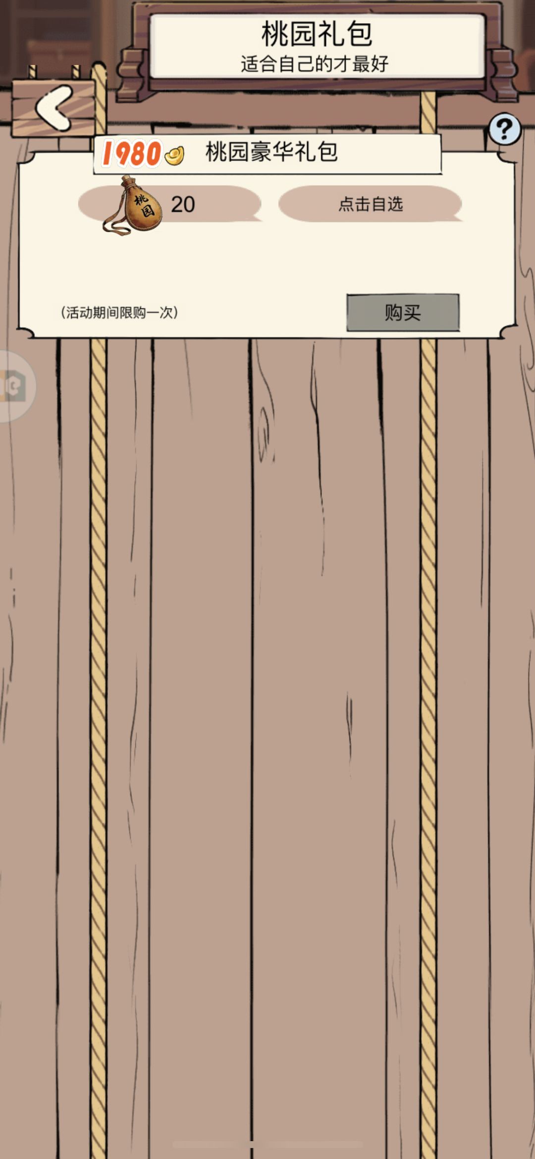 桃园礼包我没买198的,因为198的里面没有熊猫人信物,其他东西我都不缺,潜能有8.5亿,书签有1500多,其他的东西也是堆积如山,实在是没什么吸引力,想来想去还是买上面三个,桃园酒上省4000金条,其他的就没办法了,只能金条硬买,唉~我的夺天经啊,何年何月才能买出来,明明底蕴够了,却因为内功不行上不了台面.