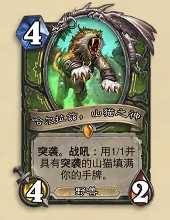 新:[4费4/2] 突袭。战吼:用1/1并具有突袭的山猫填满你的手牌。