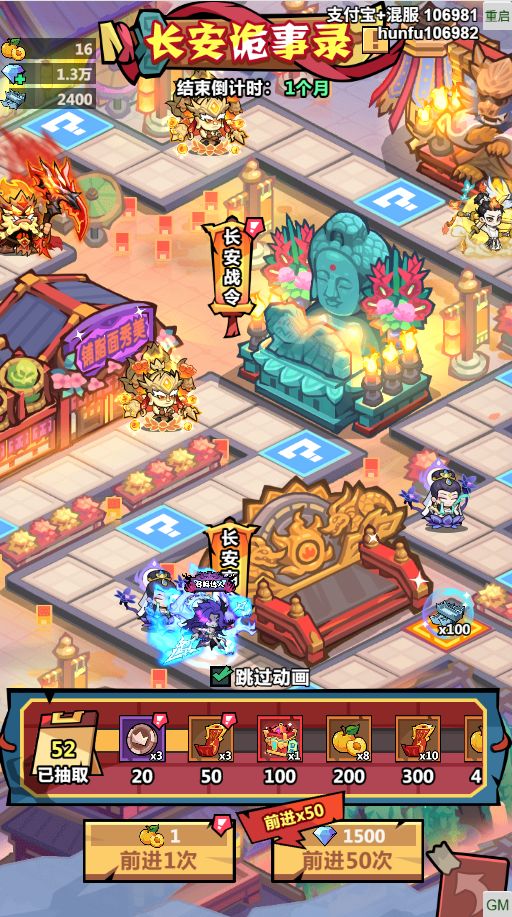 1、使用活动道具:康国金桃在长安中畅游一番吧!可以与各位角色互动赢取神秘事件奖励;可以经过终点获得终点奖励;甚至还有几率触发天降乌焰鸟事件,击败乌焰鸟可获得大量大唐银锭奖励。另外还会有幸运的玩家将会教发,天降金乌焰鸟事件,获得天子封赐的盛世金讲。
