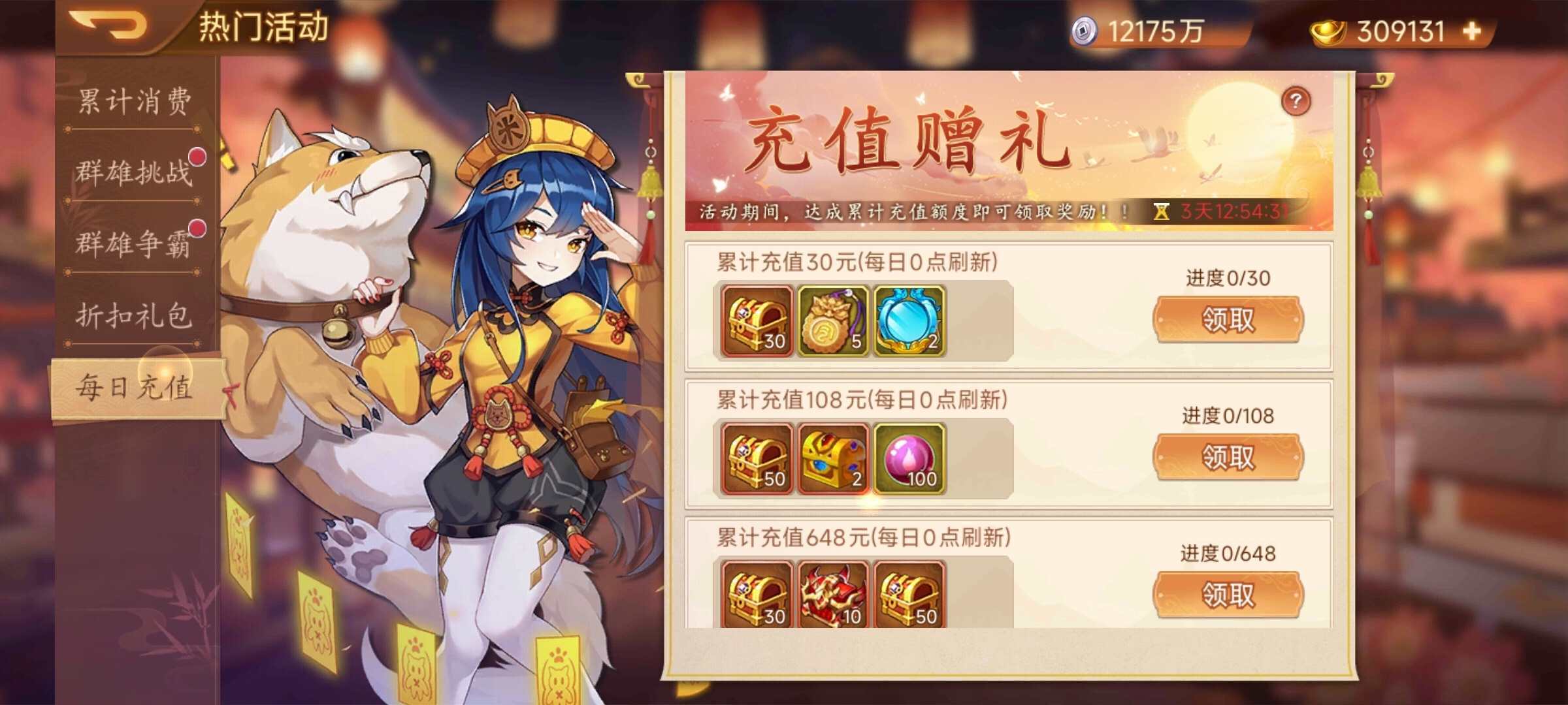 活动内容:活动期间,每日充值达成额度即可领取奖励!