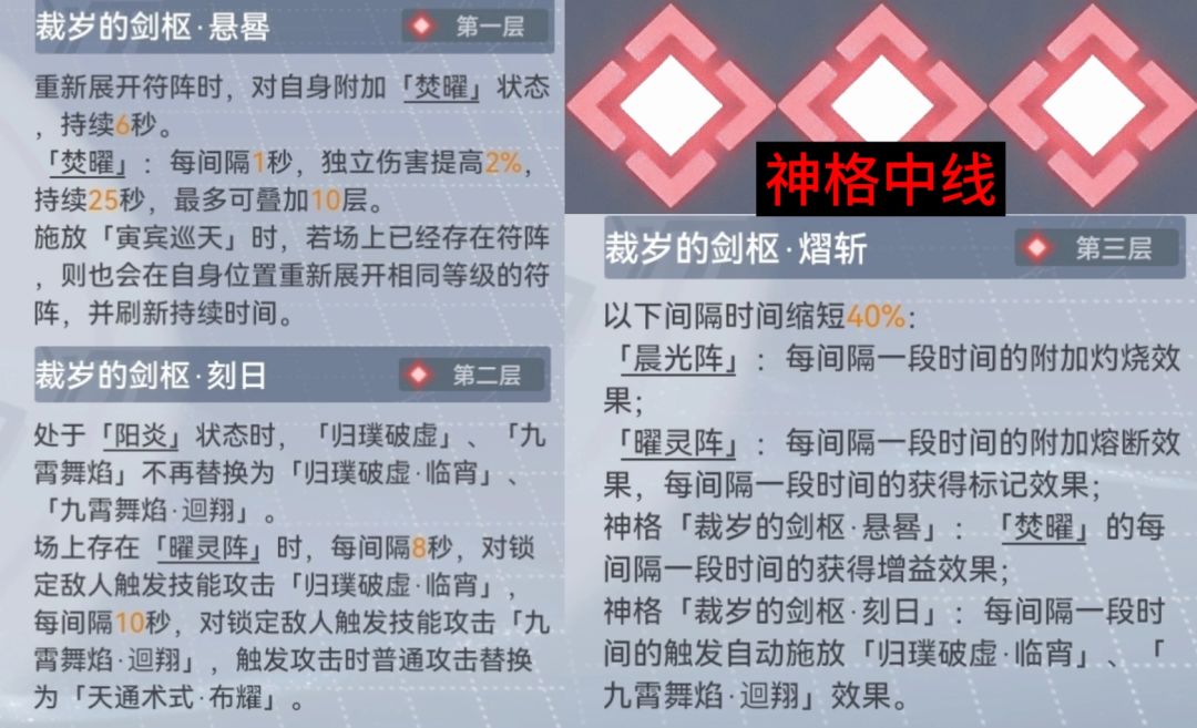 - 中1+独立且刷新阵效果。中2的改进并加快标记获取。中3减少阵提供的独立、异常及标记获取间隔; 阳炎状态自动12技能的施放间隔。