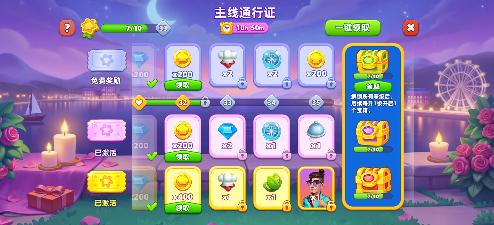 大厨之路浪漫之夜主题赛季即将开启。活动期间,购买黄金券,完成烹饪挑战,收集厨师勋章,获取丰厚奖励!