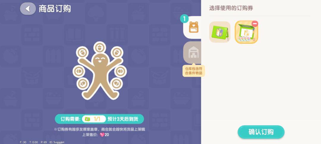 ,还有就是那个订购机可以订购返场物品啦,之前错过的小伙伴也是可以去随意挑选的,订购券盖章可以缩短订购时间,然后也不是很贵,宝宝们可以酌情购买哦,还有就是希望以后可以返场一下食谱,之前错过的真的想要啊![[表情_流口水]](https://img.tapimg.com/market/images/f0320a0494447e27b7123a94b6cbcecf.png)