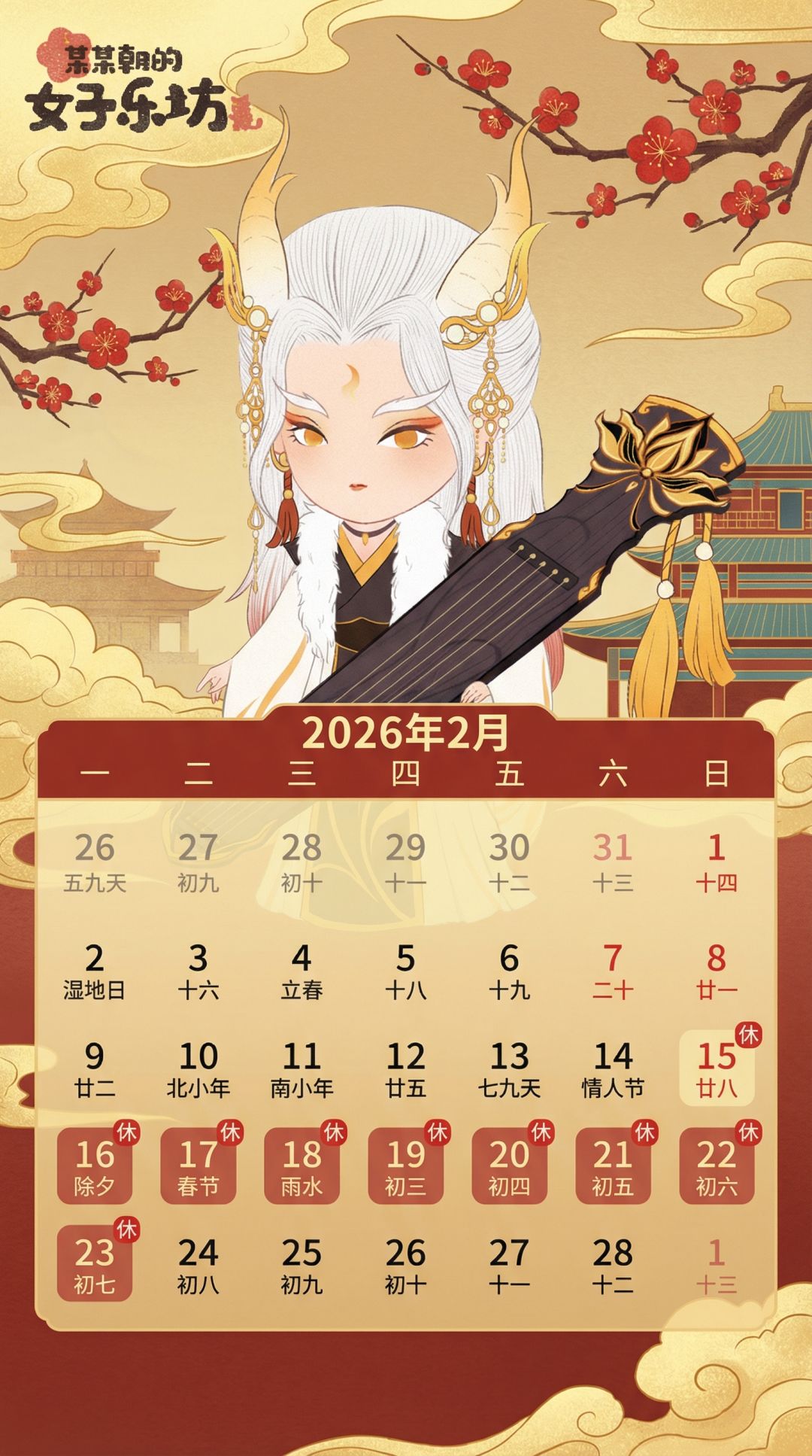 来到我们经典的欣赏环节啦,这次带来的是二月日历壁纸,坊主们请查收~