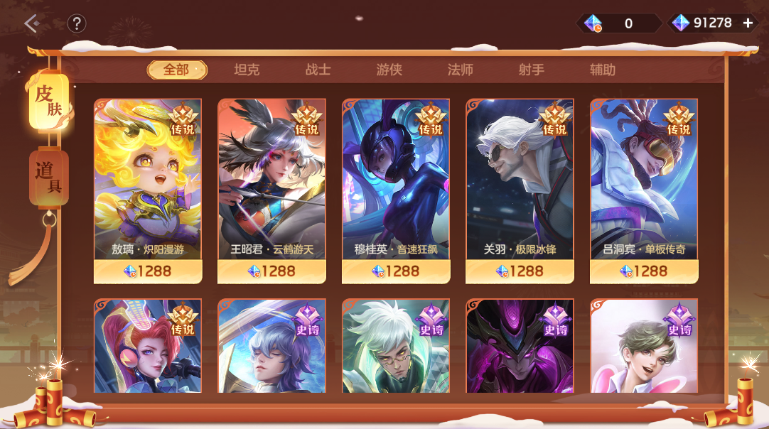 参与春节活动获取限时龙晶,新款传说皮肤敖璃·炽阳漫游等海量皮肤、道具等你来拿!Ps:在限时商城购买商品,若限时龙晶不足,可使用龙晶补足购买。