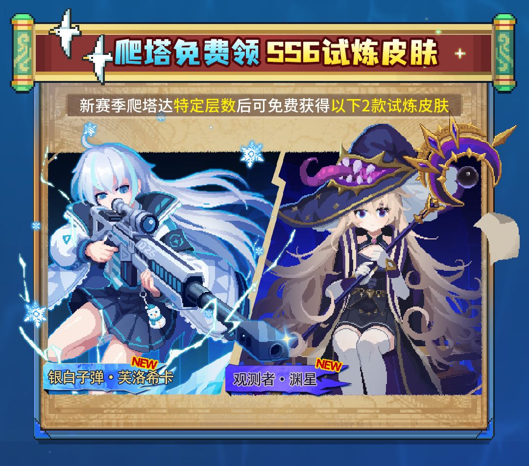 SS6赛季中,抵达红玉段位的层数与上赛季一致,为400层,且试炼之地的部分地图依旧为虚空之地。此外,当赛季角色达到特定层数后将可免费获得2款SS6试炼皮肤:“银白子弹·芙洛希卡”、“观测者·渊星”。