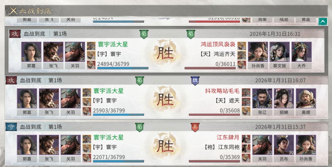 最近《三国:天下归心》开启了【灵感测试】,有不少兄弟都转过来体验新版本,本期就来推荐一套由关羽、张飞、郭嘉组成的前期高性价比阵容。