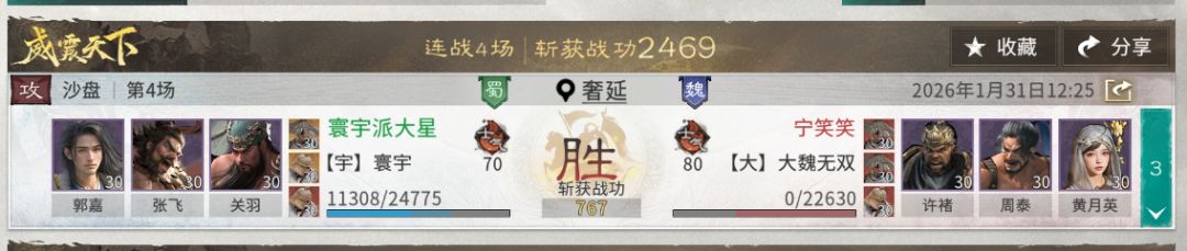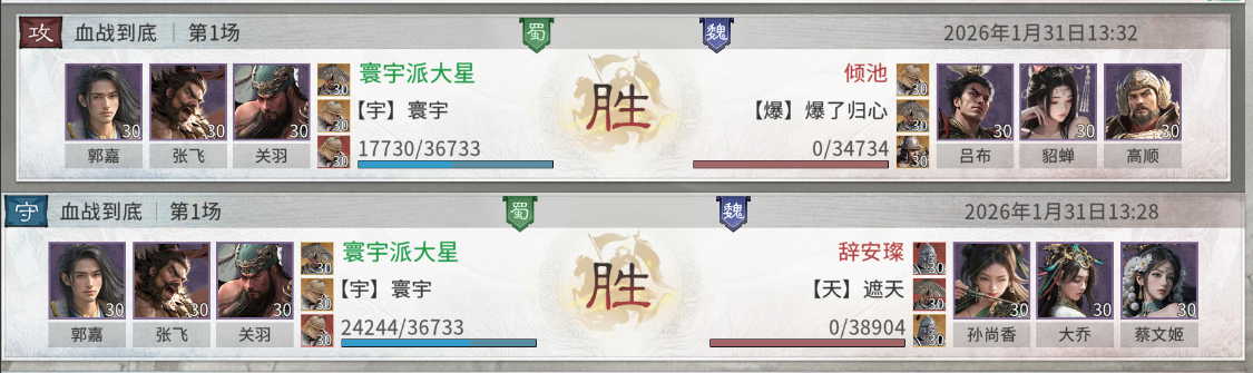二、战报和克制关系该队伍面对当前版本的一些主流阵容如吕布队、孙尚香队都有一战之力,取胜后的战损也相对较低,有一定的连战能力。后期可以根据环境的变化去改动自身的阵容。
