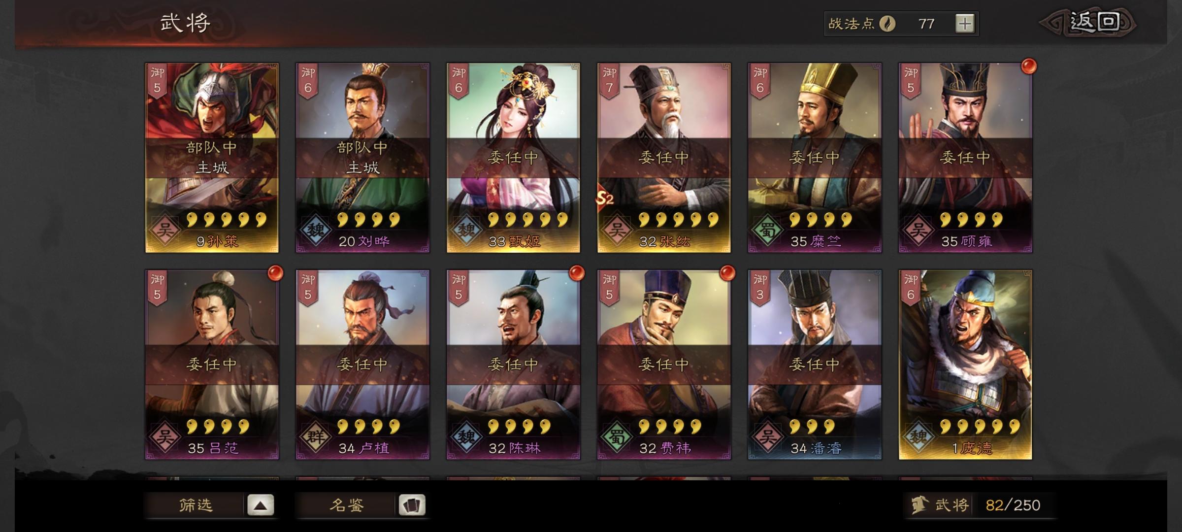 麻烦各位大佬了,武将很散,不知道怎么组,哪怕有一队当主力就行,秋梨膏!
