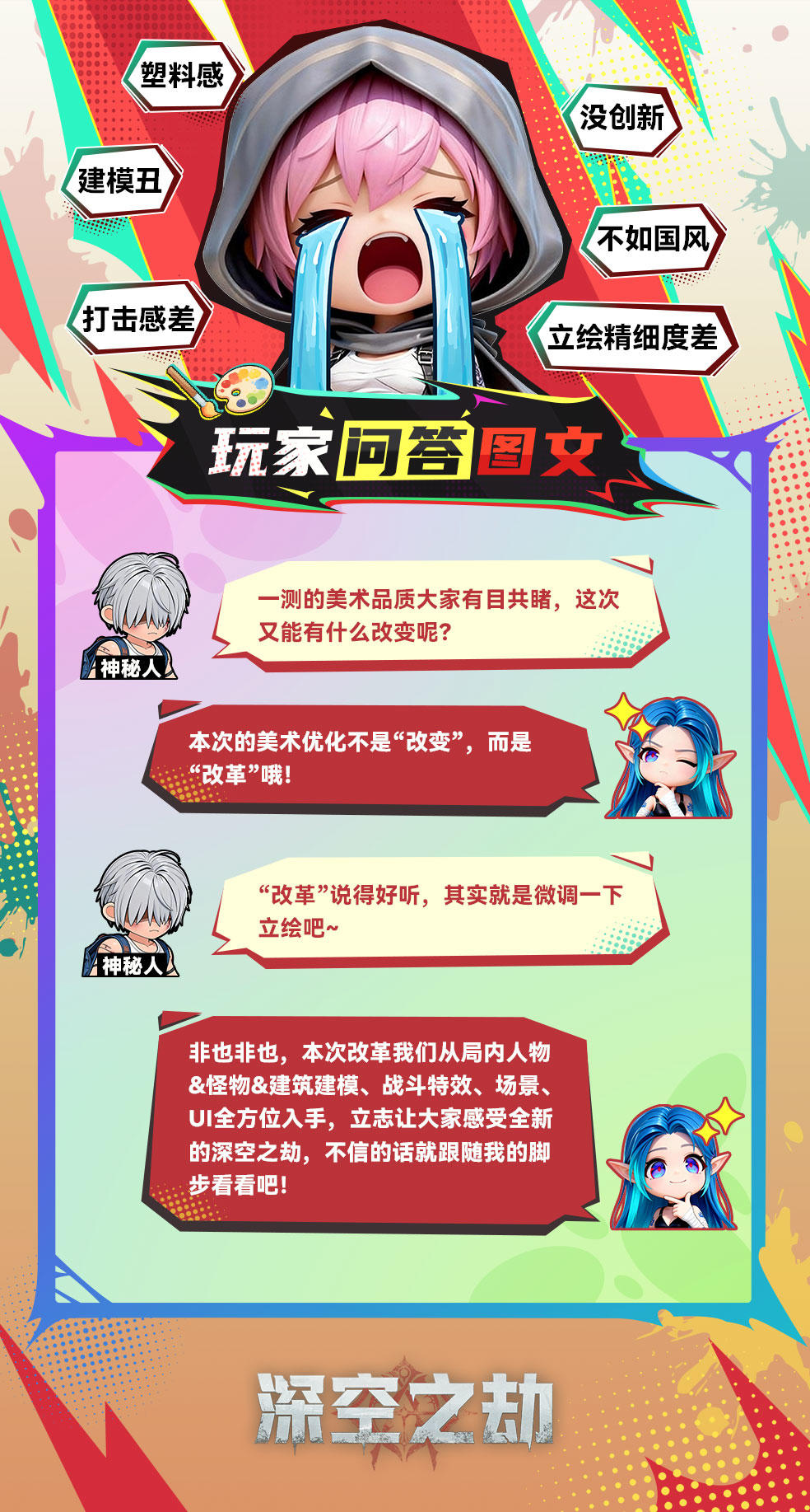 一、玩家问答图文一测期间,我们收到诸多玩家关于美术方面的意见,“塑料感”“建模丑”“打击感差”吐槽如雪崩般把美术组淹没了~