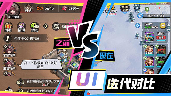 为确保玩家美术观感的统一,我们同步推进全UI界面配套优化,构建统一且富有质感的Q版UI体系。登陆界面以Q版角色与冰雪场景融合为核心,采用柔和蓝底渐变色搭配圆润的登录图标;加载界面替换为萌系插画风格,穿插迷你角色动作互动画面,;游戏内UI全面简化布局,按钮、面板采用圆角设计,图标以Q版化风格重构,色彩与场景色调高度适配,在保证操作便捷性的同时,实现美观与实用的兼顾。