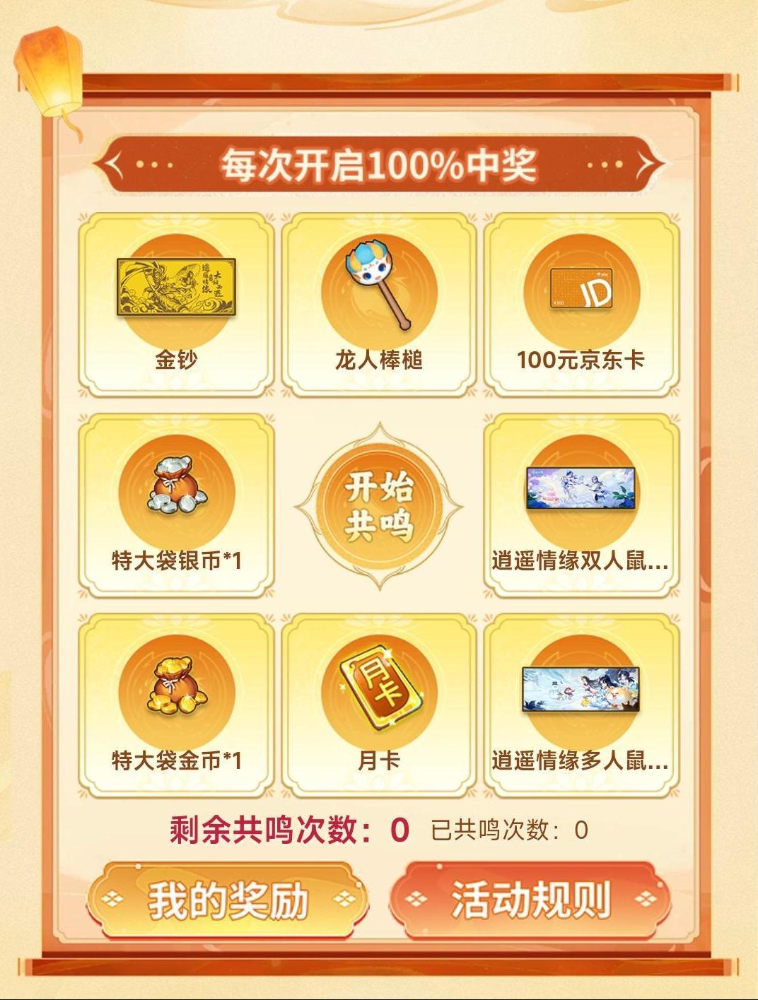 1g足金联动金钞、100元京东卡、月卡、游戏资源道具......