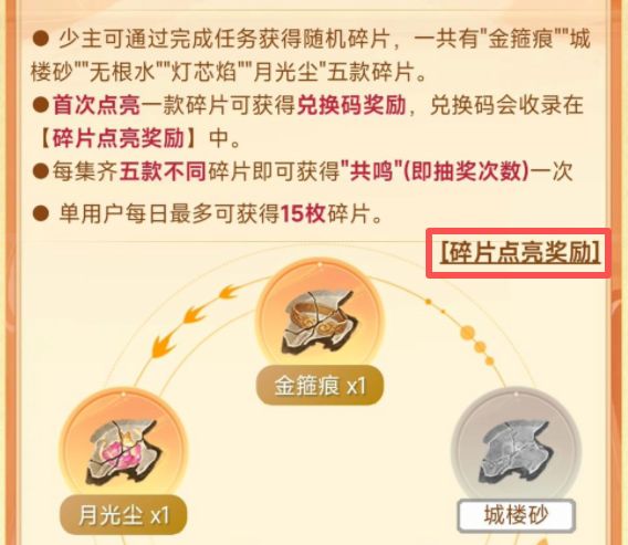 此奖励兑换码收录在【碎片点亮奖励】中,请及时取用~