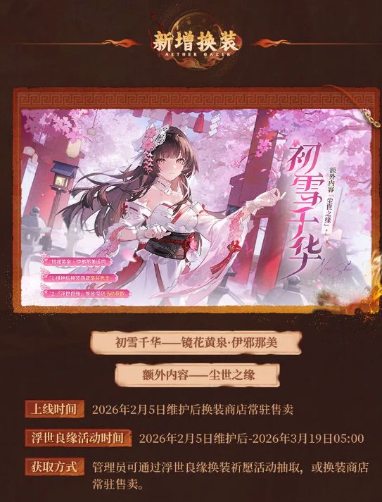 - 初雪千华 娜美婚纱 新增次级奖池皮 (比常规奖池皮奖励降低 抽取费用相对降低)也可以使用皮肤券购买 (首周折扣180券 后期200券) DLC在结婚后有独立场景 独立触摸互动及语音 具体的还是需要玩家自行在游戏内体验