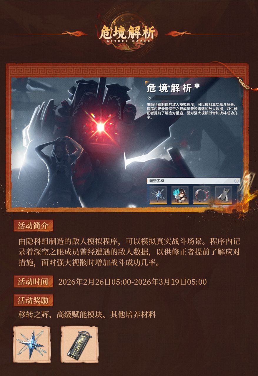- 迭代难度本 进行版本更新 从上版本的三小怪+一BOSS关 切换回双小怪获得词条 BOSS关自选词条增加得分倍率 小怪关1需要水队 小怪关2需要雷队 BOSS关需要火队 跟上版本一直副本有统一的增减益效果 全属性韧性提高 破甲增伤 全队同属性独立提高