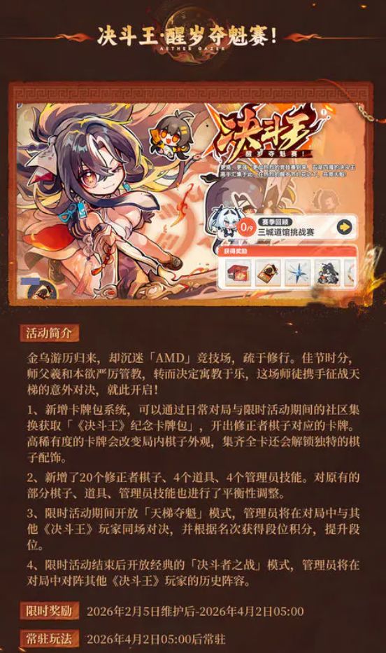 - 决斗王:醒岁夺魁赛!(复刻决斗王 主体从PVE 转型到PVP 新增开卡机制 全新立绘!)
