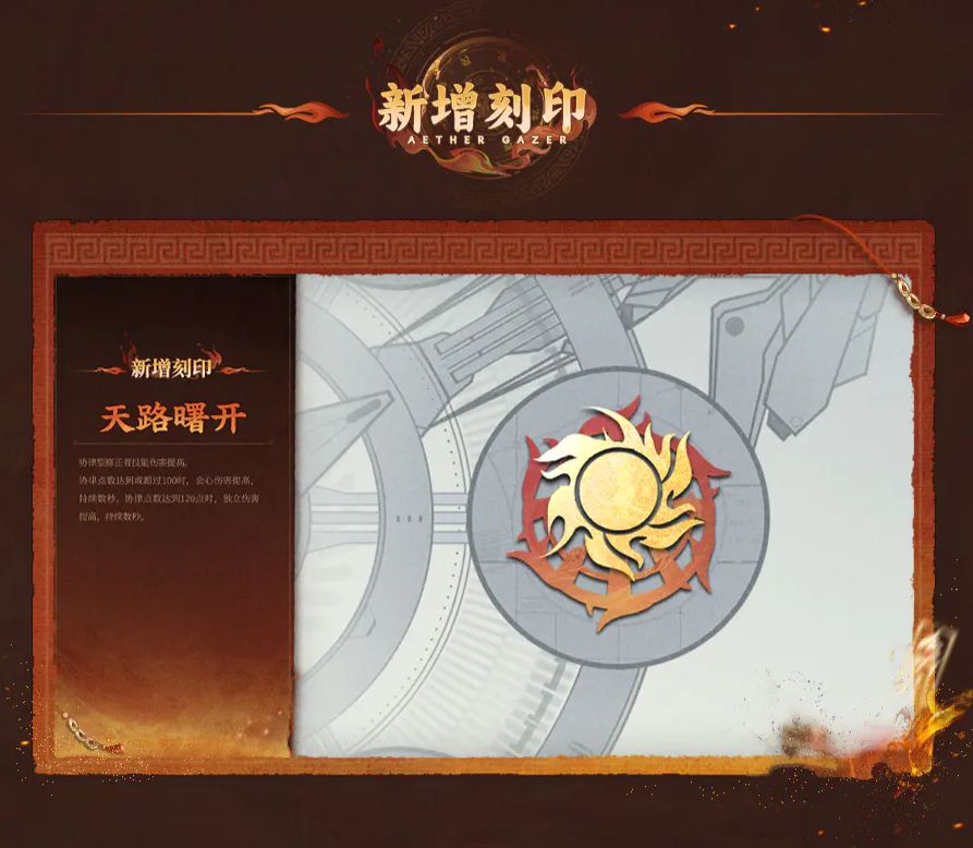 - 新刻印:天路曙开 位置246 协律系新刻印 增加协律系角色伤害 根据是否携带管理员芯片触发协律效果 触发普通爆伤或 特殊独立伤害 (协律角色专属 以后协律角色必定需要携带管理员芯片 触发独立增加 而非原来的猫猫芯片摆烂 对于管理员芯片的解锁与升级也慢慢提上了日程 )