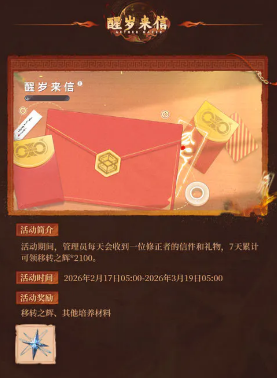 春节专属活动 从初一到初七 每天登陆游戏邮箱内领取 上线就有白嫖的十连 别忘了