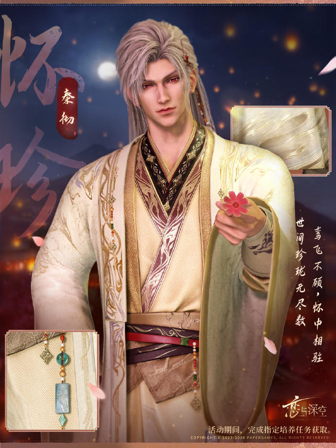 活动期间,完成「人间缱绻意」系列活动思念的指定培养任务,即可领取海量思念升级材料与思念突破材料。