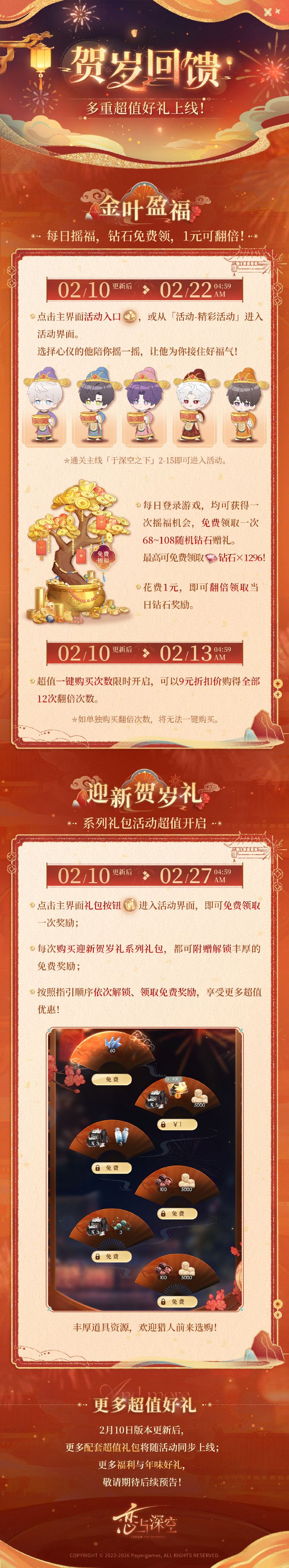 Tips:2月10日版本更新后,更多配套超值礼包将随活动同步上线;