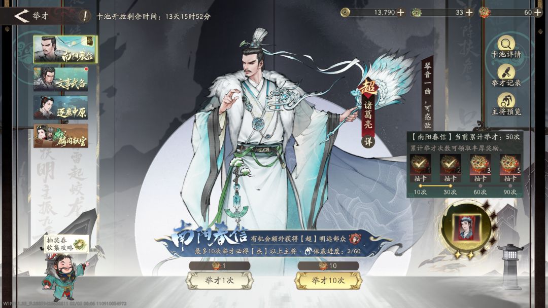 【抽将记录】孔明,入队!剧本等级66 抽到