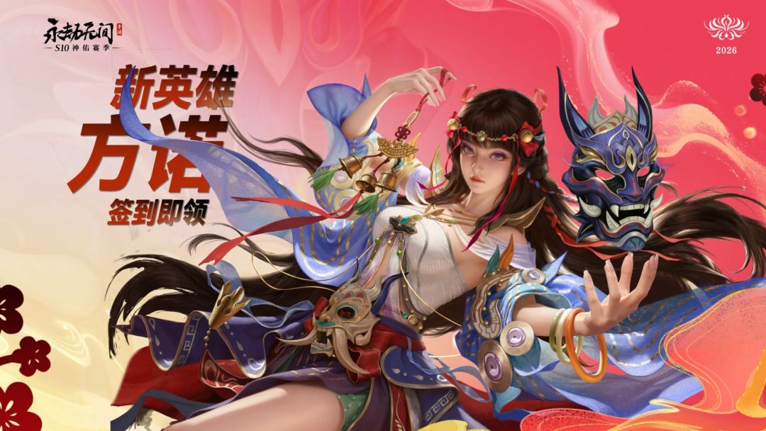 首日签到送新英雄【天祀傩祝·方诺】!累签7天、14天可再得通用极品动作【狮来运转】、通用极品背景【喜迎春】哦~