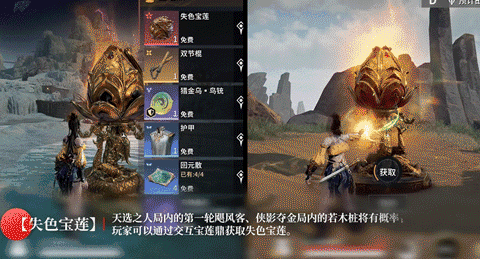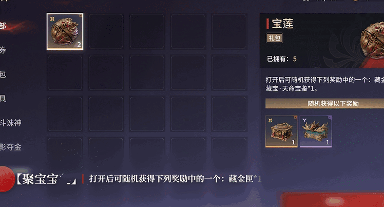 全新玩法【宝莲鼎】天选之人、侠影夺金和共斗诛神三大模式中~在局内达成相关要求就能获得【聚宝宝莲】!开启后就能获得【藏金匣】或【藏宝·天命宝鉴】!