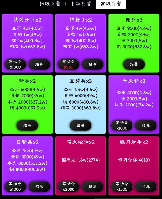 - 氪佬版:氪金拉银月情况下,国战点全部留着换霜火