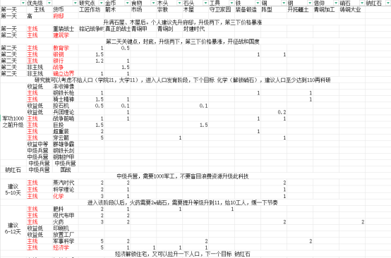 基建阶段:围绕科技+人口建筑+资源建筑 需要的资源去策略规划建筑升级【前2个月】