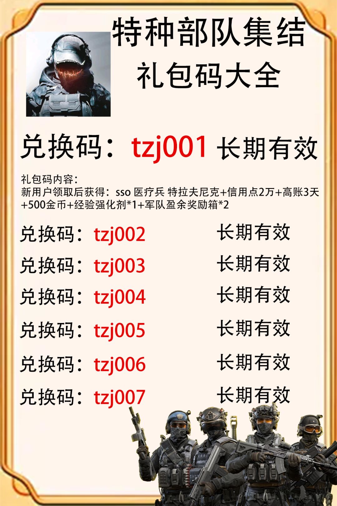 特种部队:集结礼包码,特种部队集结限定专属礼包码
