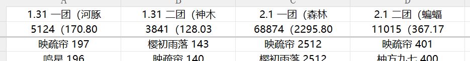 说回打法安排上,时间着实是不能忽视的一点。如果你在的家族有发过预排表也就是提前发过打法的话,其实已经可以判断今晚深渊大致的挑战次数了。【最终预计所能达到的层数 - 起始层数 + 5 - 1】就是正常参与该次深渊挑战的总次数。一个周周都恰好通过62层的家族应当是从46层开始本周的深渊挑战,那么挑战次数应为:62-46+5-1=21次。挑战次数可以在一定程度上反映一个家族深渊挑战的节奏快慢,目前顶尖家族甚至可以在一次超级周的深渊挑战中参与30+次,实在是前所未见的壮举,如果有机会的话真想试一试置身其中的感觉啊。
