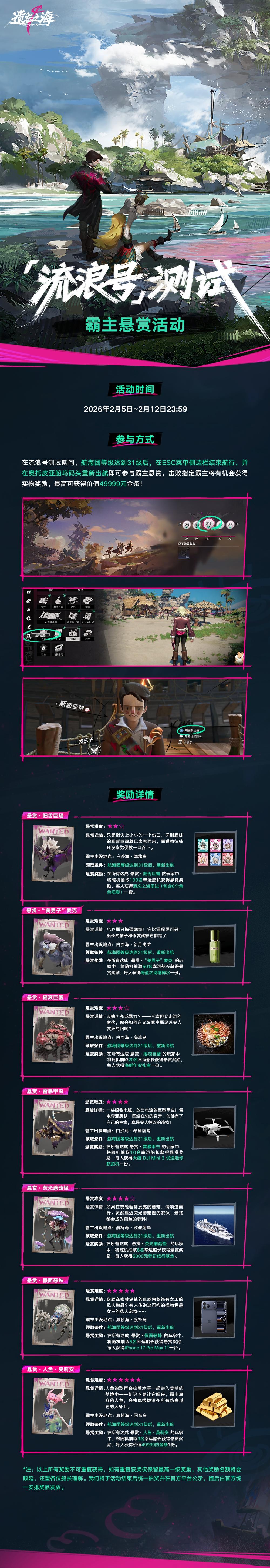 船长们,预约游戏抢资格,参与霸主悬赏活动抽取金条、iPhone 17 pro max等豪礼!点击卡片立即预约: