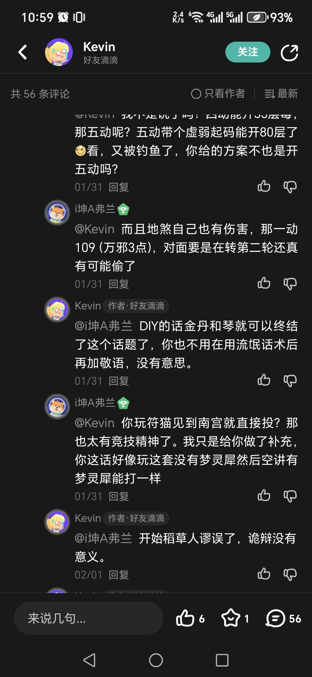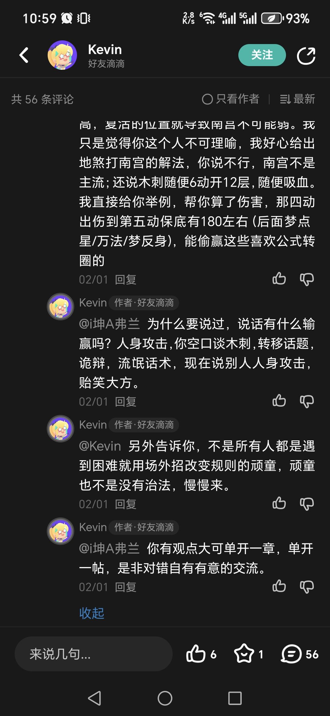 我说了一个“又急”,就被打上一个网络流氓的标签。我坚持实践是检验真理的唯一标准,认真复盘发图片发帖,他认为这是诡辩。有个路人在我帖子里发言并刚好问他猫剑遇到南宫怎么解决,他说这是盘外招。话已至此,愿汝好自为之。
