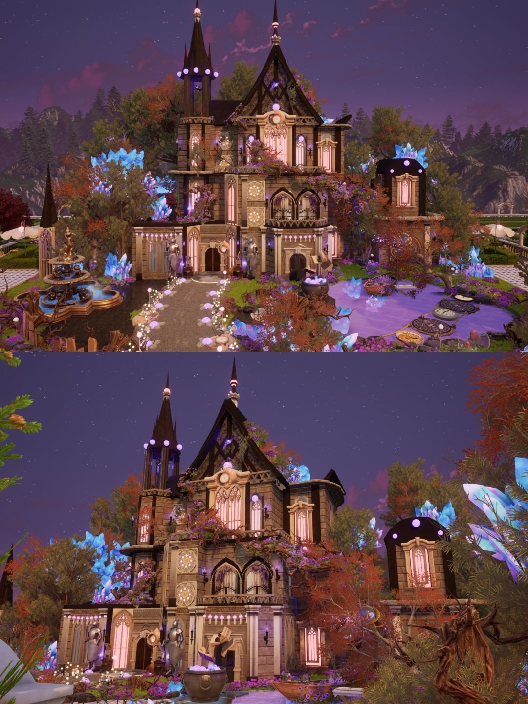 外景庭院湖泊紫色花朵为主,要求有蓝色水晶