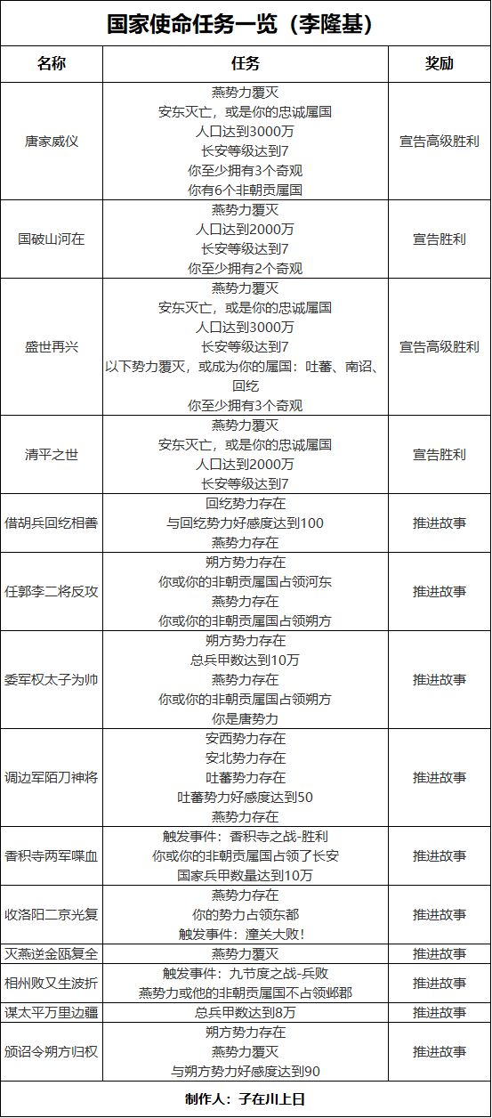 我们依旧分阶段按照剧情完成终局国家使命任务,我将李隆基的故事分为五个阶段,