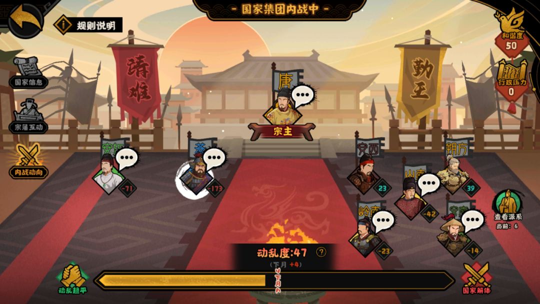 我们选择通过增加动乱度的方式来使大唐的国家集团解体。