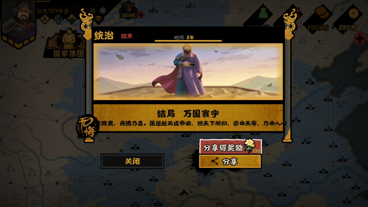 我们依旧分阶段按照剧情完成终局国家使命任务,我将安禄山的故事分为五个阶段,分别是:潼关之战、收服故地、消灭叛军、平定河北,再到最后的万国寰宇。